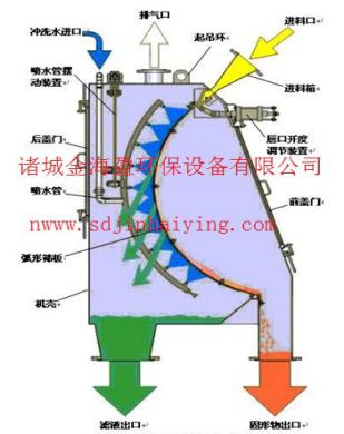 PHS型噴射式弧形篩的關鍵的技術就是過濾篩柵,每根楔形棒條的角度、均勻度和密度、光滑度,制作精度都至關重要。包括安裝時的弧度都影響著水的過濾效果和速度。同時,網上聚集的固形物,在重力慣性和液體的潤滑作用下,順著弧形篩板滾動下來,液體不斷地沖刷篩柵,使縫型篩柵起到自凈作用,從而完成篩柵連續自凈和固形物不斷收集的全過程。自動清洗水裝置可以自動高壓清洗篩柵,保證篩柵不被堵塞,整體不銹鋼結構,環境適用性極強,耐酸堿不會被腐蝕,設備保值性能高!
