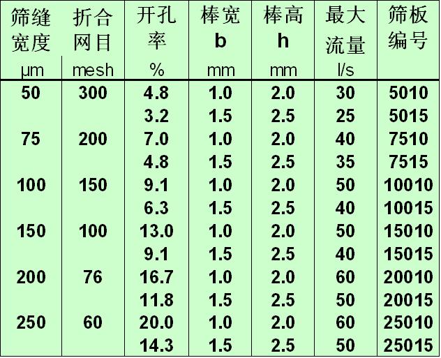 四、篩柵縫寬尺寸規格對應過濾目數: